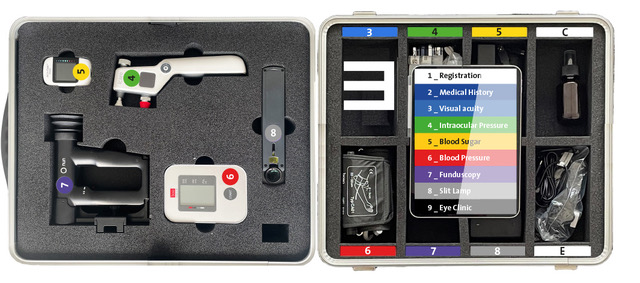 The ophmo case combines hardware and software components (e.g., an app or digital PDF forms). Specially trained medical assistants, called “operators,” systematically register, interview, and examine all individuals over the age of 50 in the respective rural areas. The collected data is then transmitted to ophthalmologists or specialized clinics, where the diagnosis is made. This workflow is highly efficient: once the ophthalmologist has the complete patient data, it usually takes only a few minutes to establish a diagnosis and treatment plan.